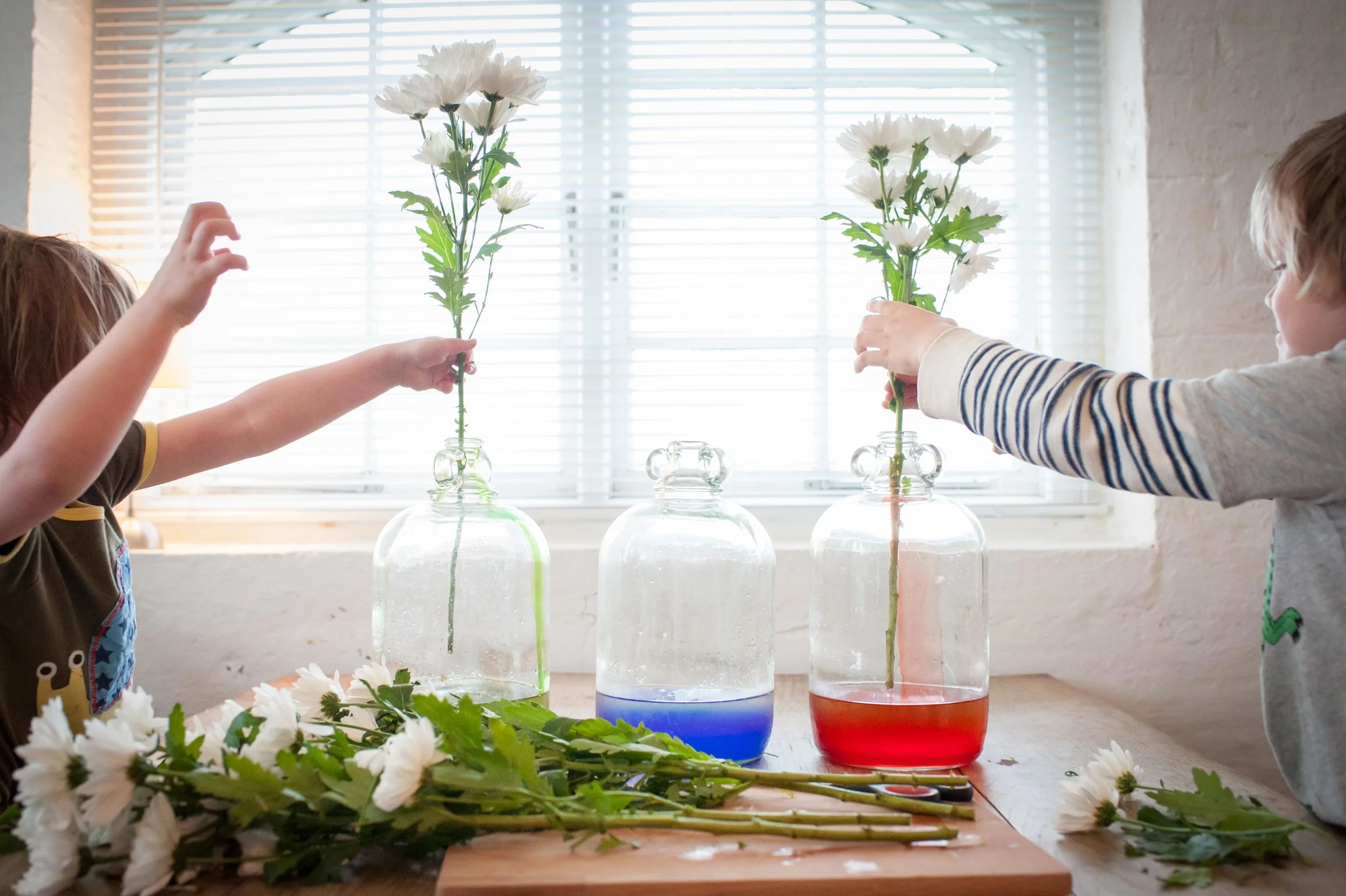 The aim of this colourful activity demonstrates how plants absorb water through their roots and up their stems and into different parts of the plant such as the leaves and petals. By adding a little food colouring white petals can be transformed into different colours, which really help children to understand how plants feed.