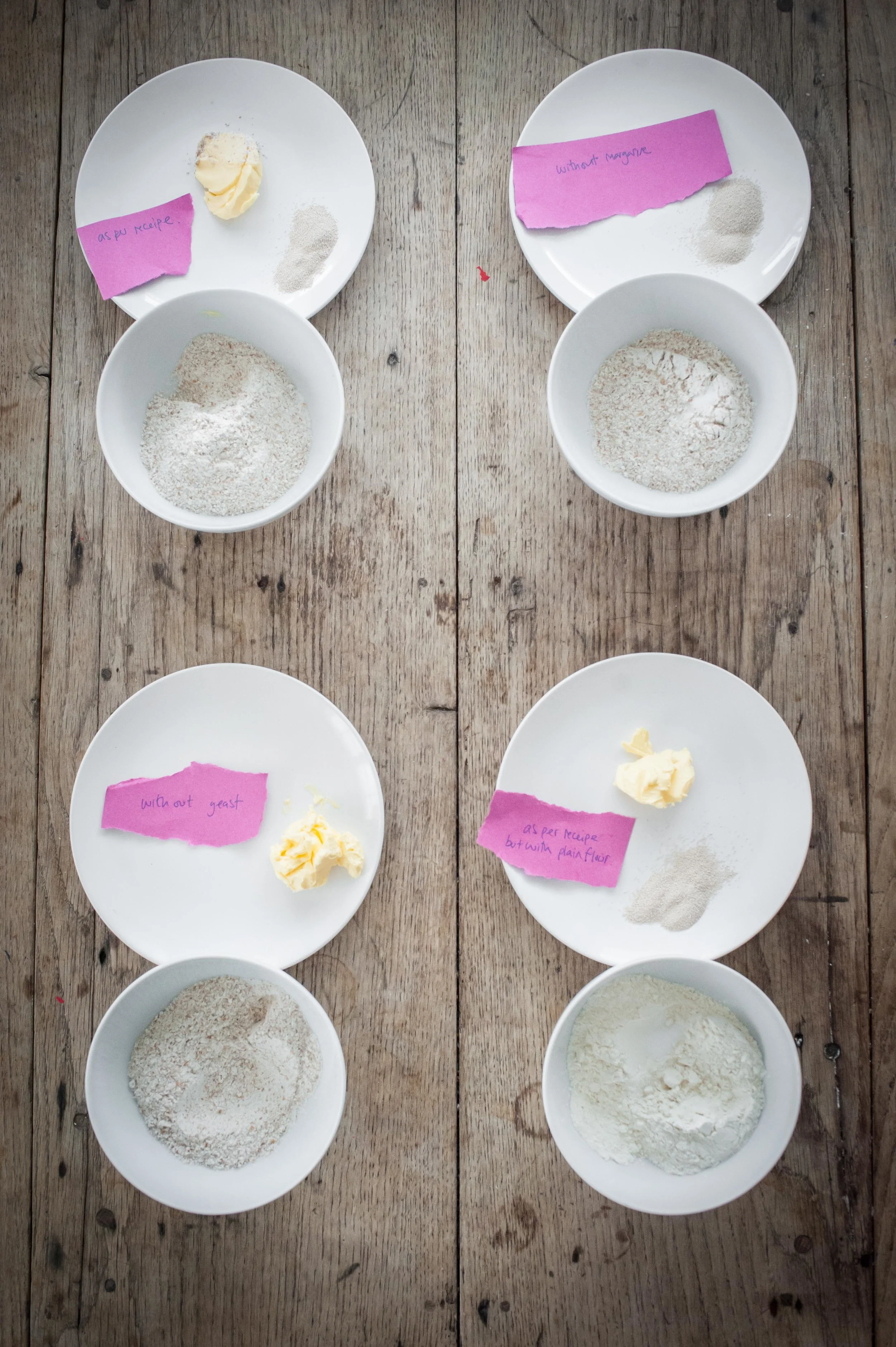 She dutifully helped me to measure everything out before we mixed the ingredients together for the first combination: as per the recipe using strong wholemeal bread flour.