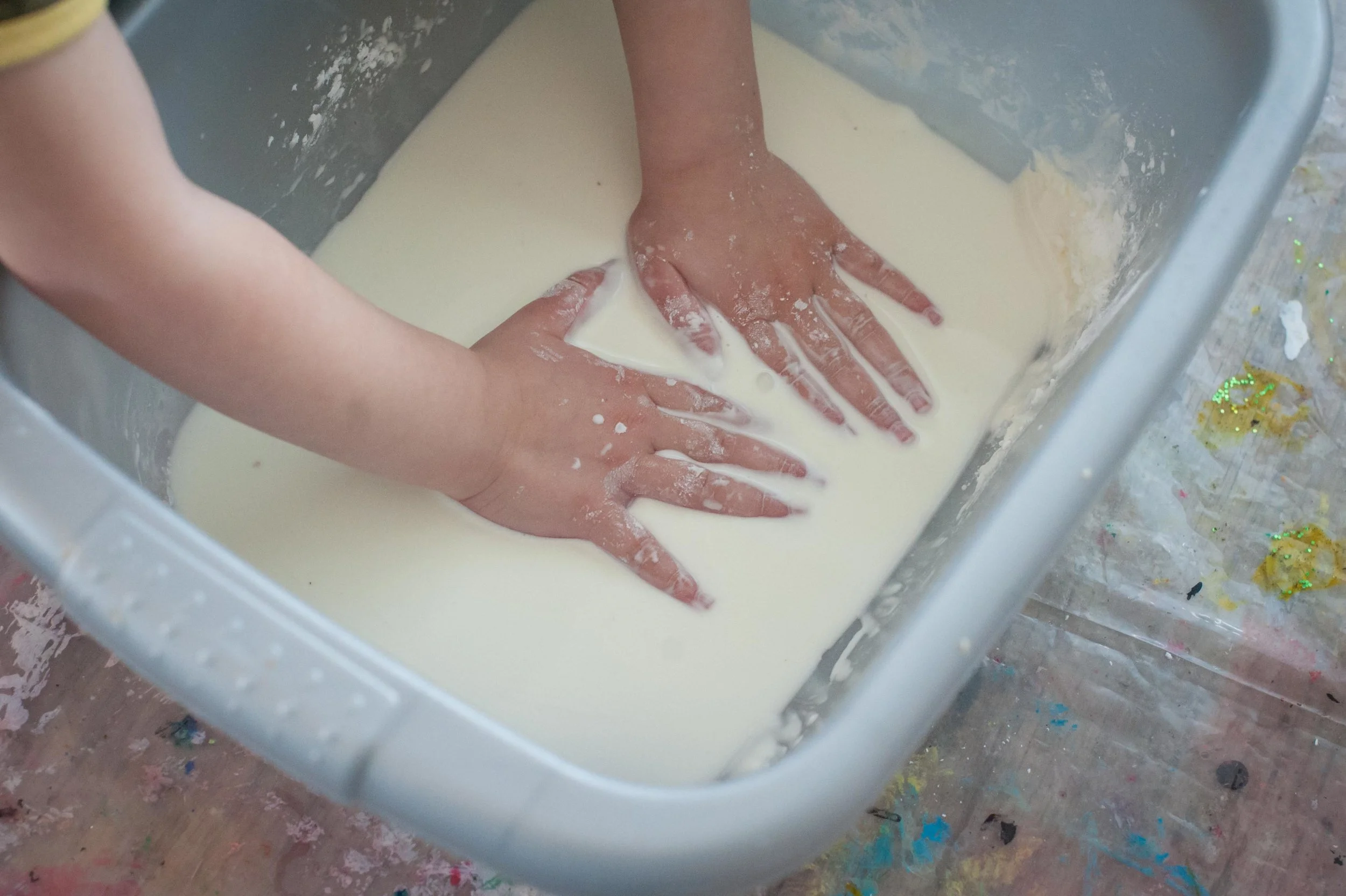 We had to have two attempts at this activity because I gave the children the wrong ingredients! It actually turned out really interesting to compare how the two faired in their slime making capabilities though.
