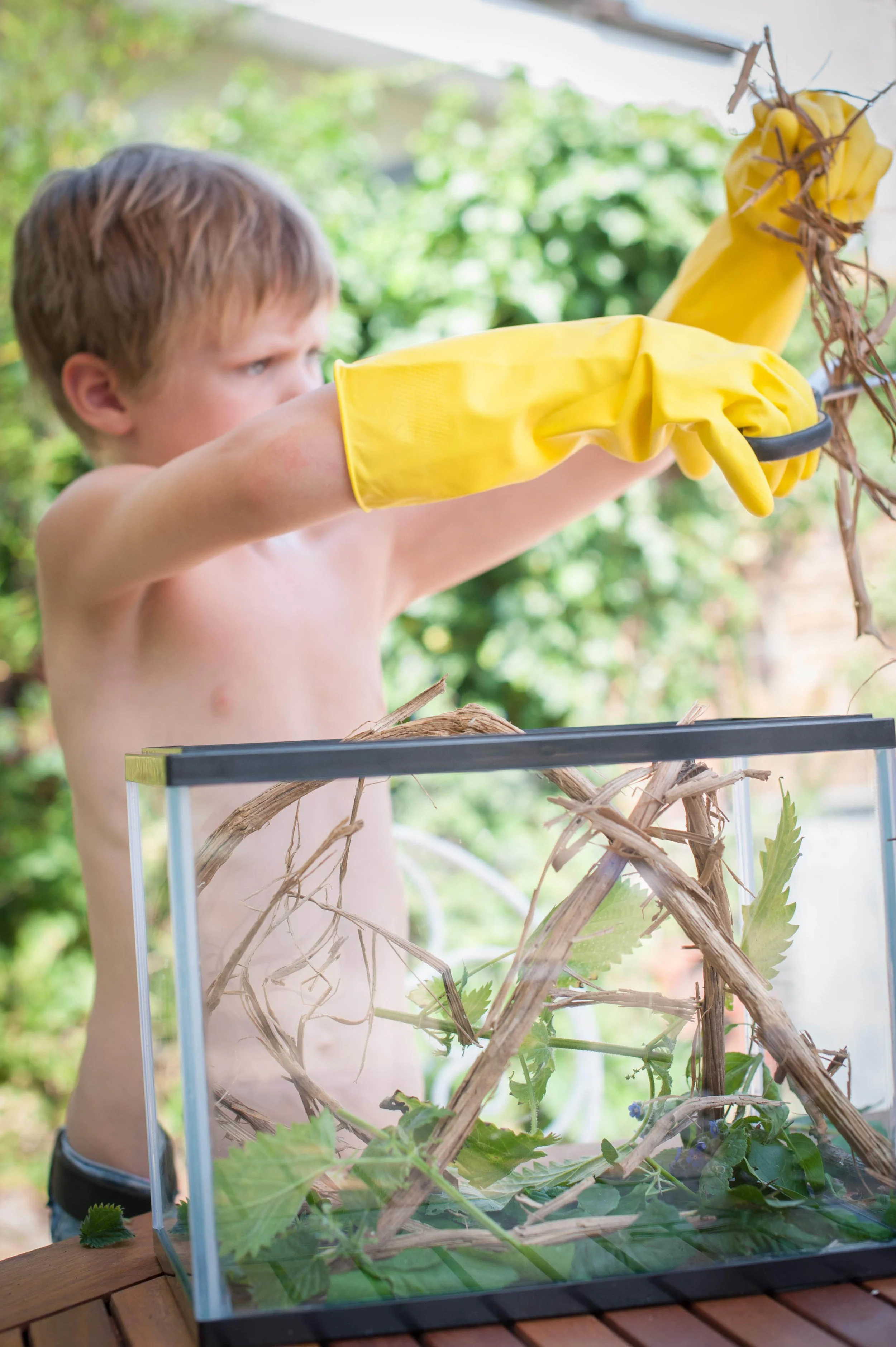 He did help collect various leaves and sticks to put in the caterpillar's new home but it was painful to watch. The heat was incredibly intense and Jenson clearly didn't appreciate being made to abandon his newly constructed LEGO set to forage for plants.