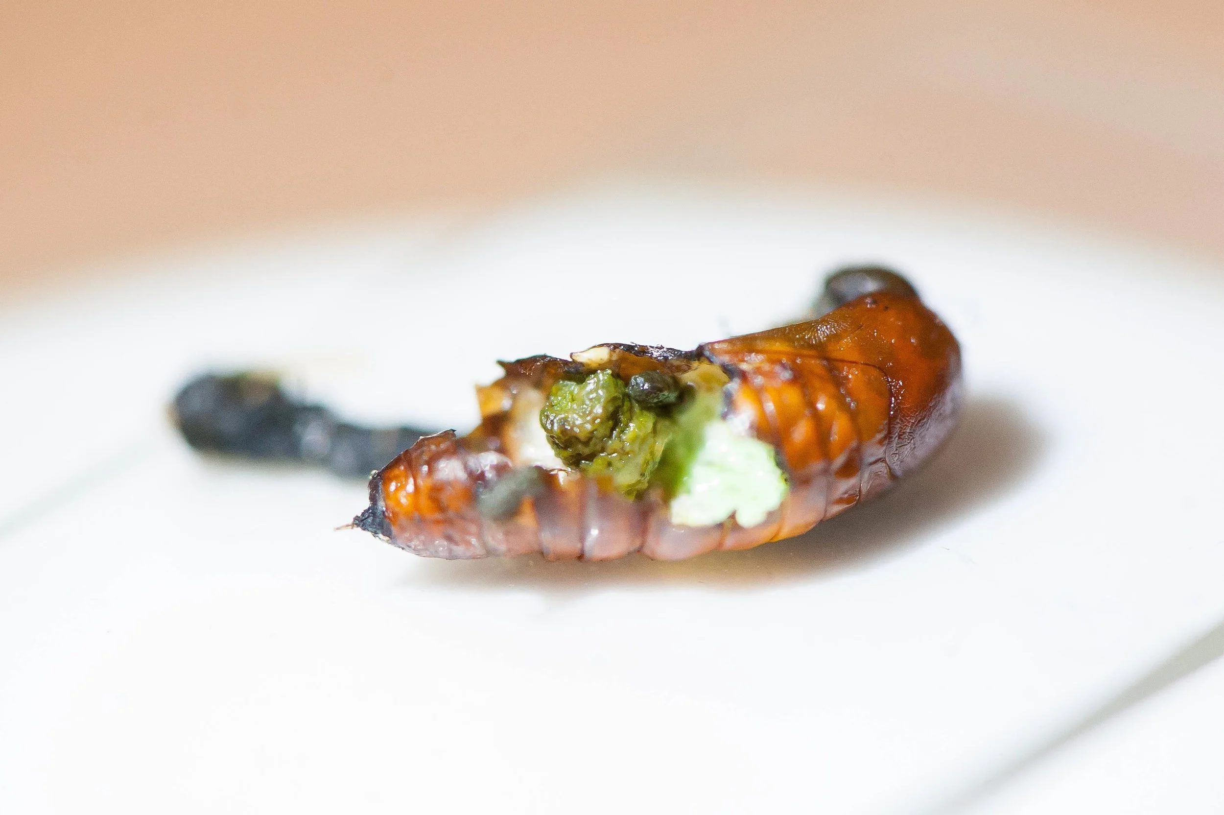And here's a little caterpillar Jenson found in one of the blueberries he picked from our garden - he almost gobbled the little creature up!
