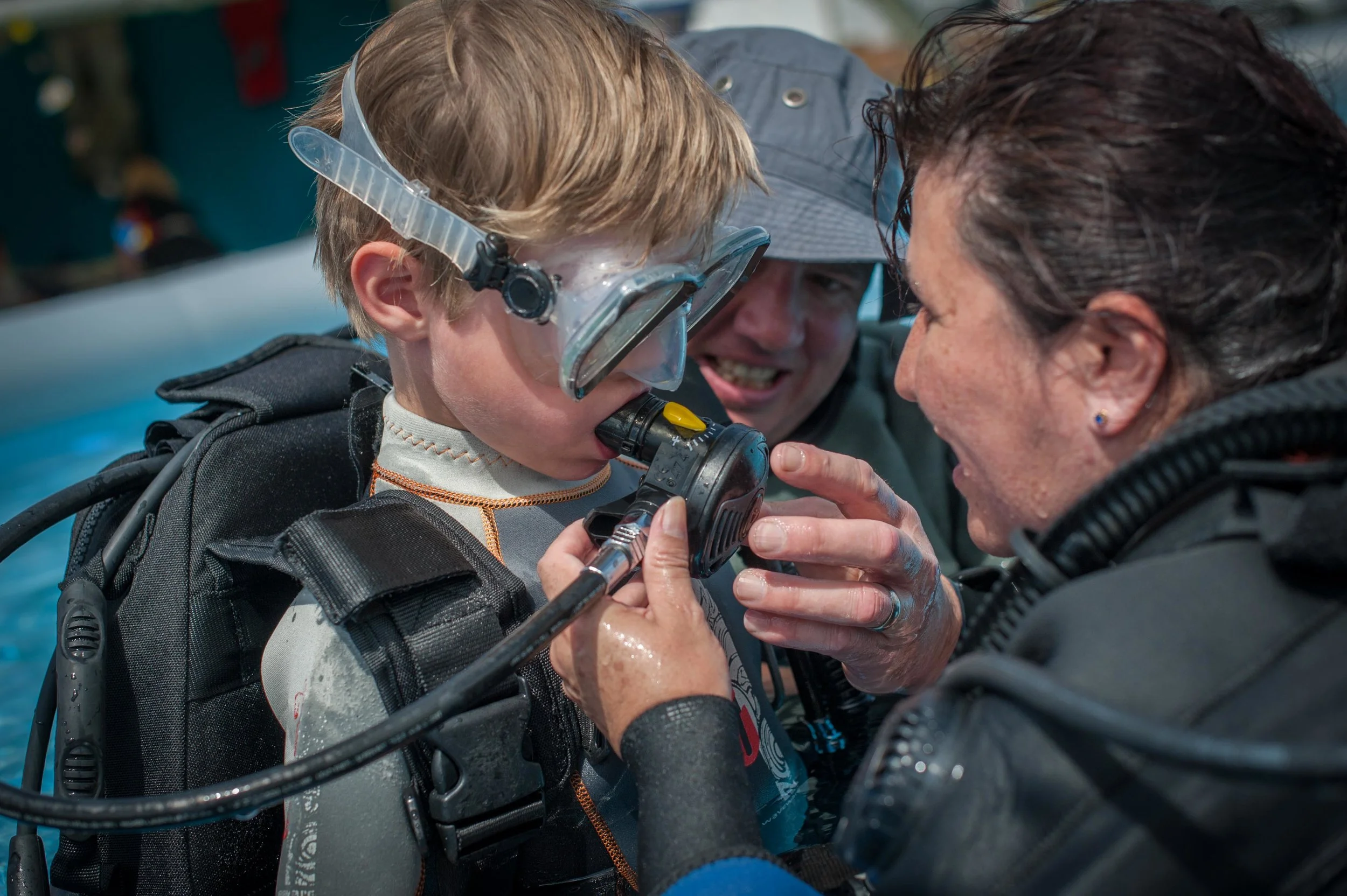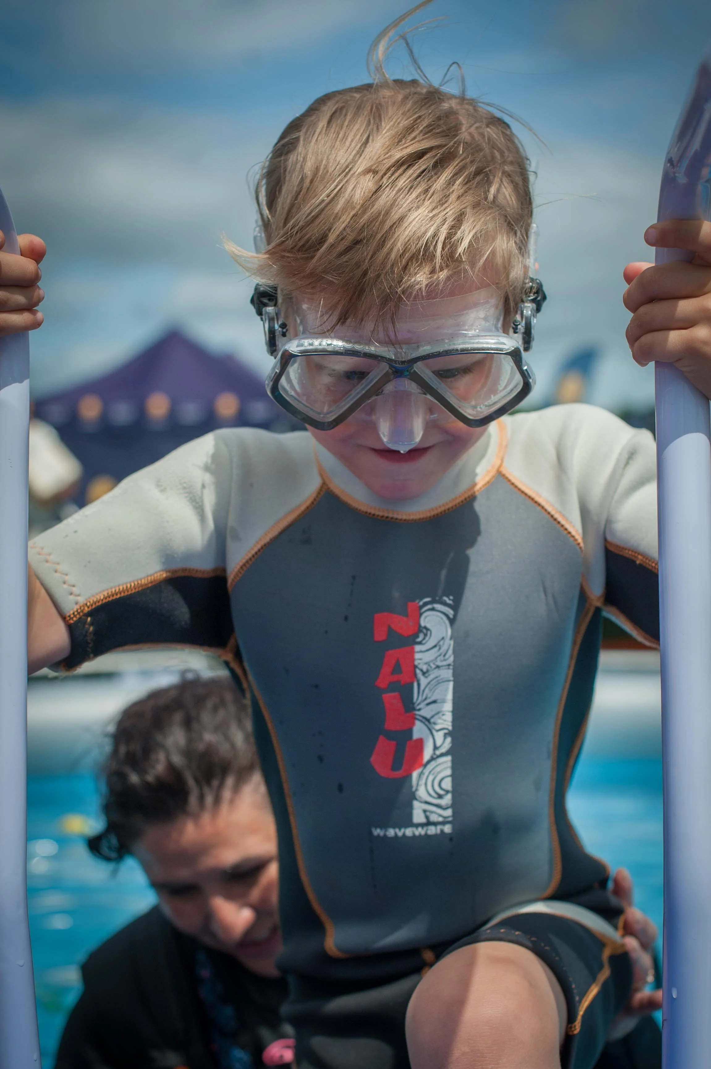They then gently asked him to submerge his head under the water and within just a few minutes he was off. We couldn't stop him!