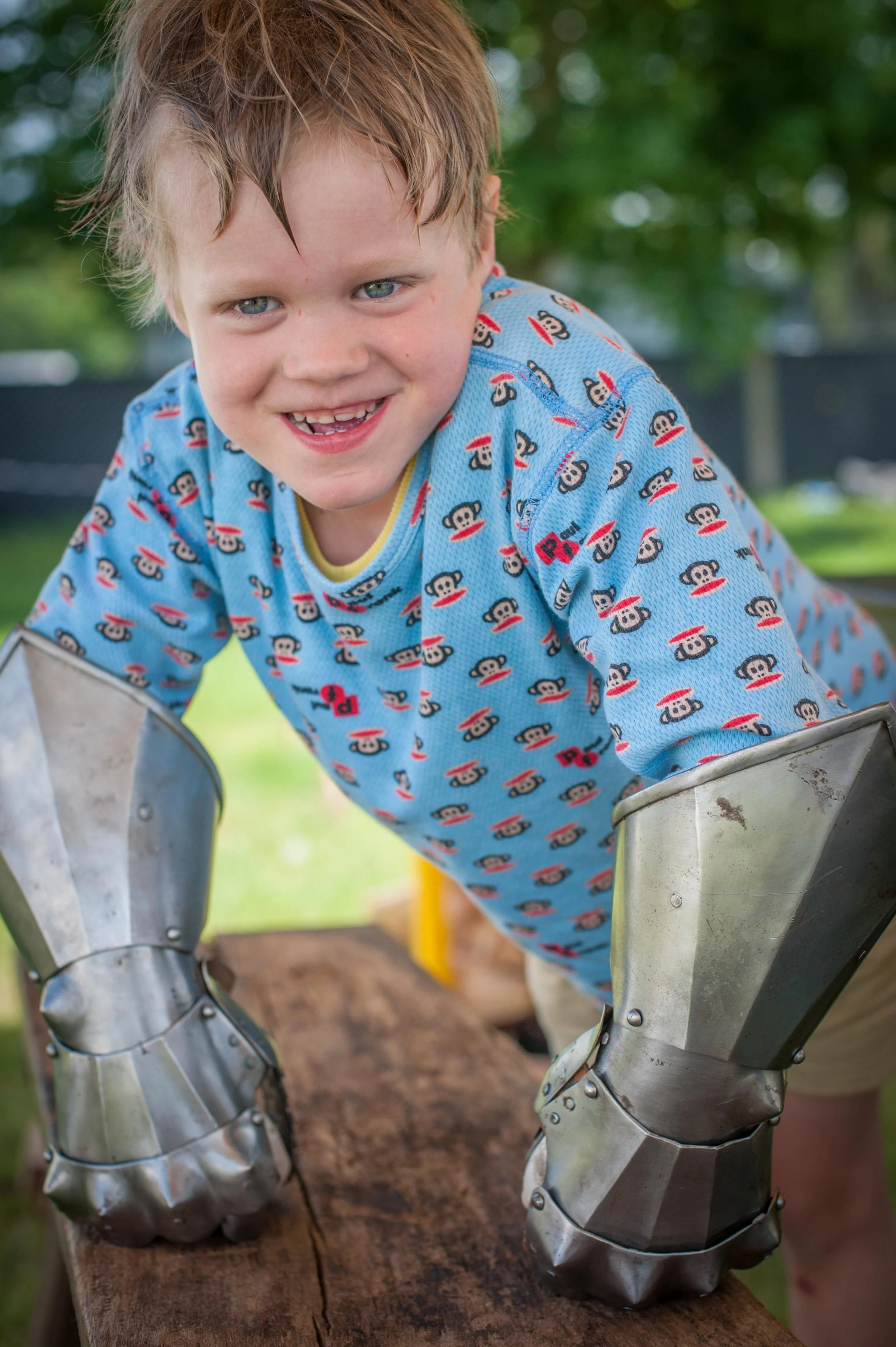 All jokes aside, it was lovely for him to be able to try on pieces of armour. We've read about chain mail and gauntlets in books but I don't suppose any of it makes as much sense as seeing it in real life. Just being able to pick up these items and feel how heavy they are gives him far more insight into the life of a Medieval knight than any book could.