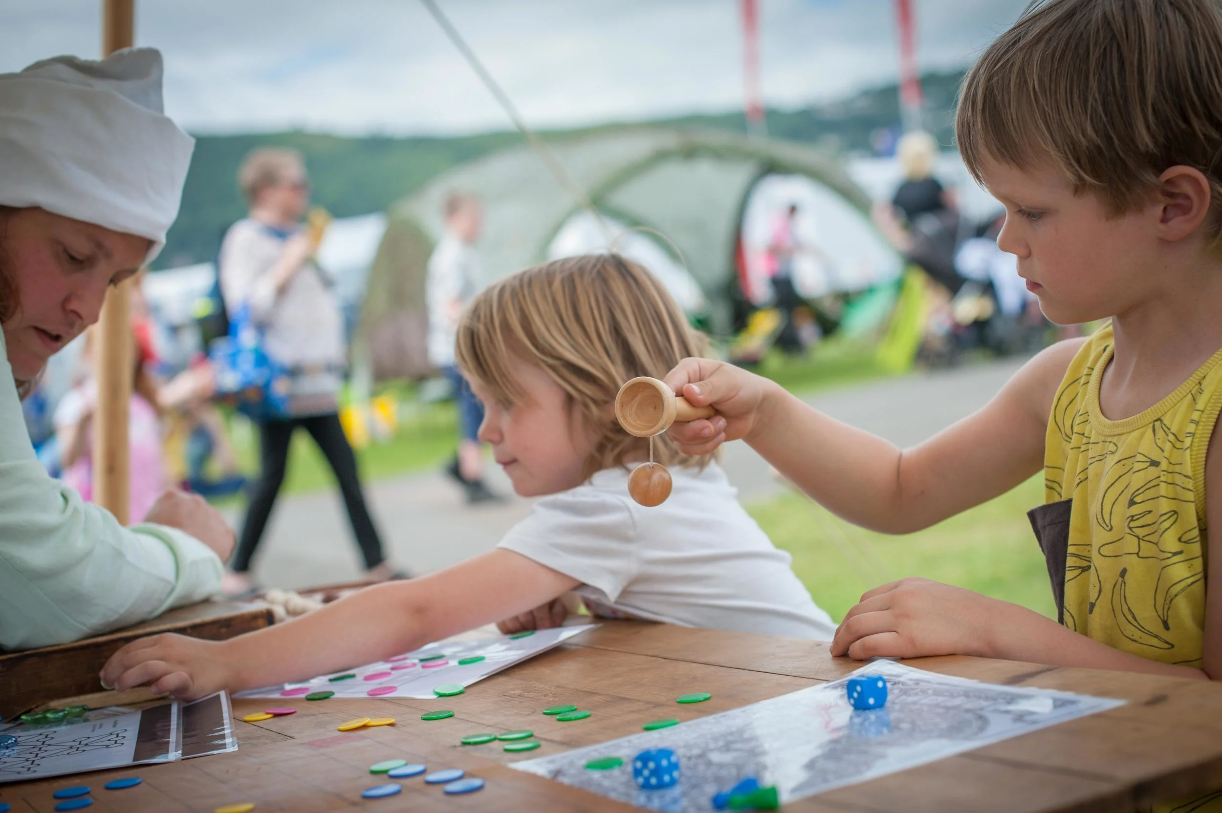 They had a go at playing some Medieval games too and again, because the stand was so quiet they were able to spend some quality time listening to what the lady was saying and learning a fair bit too.