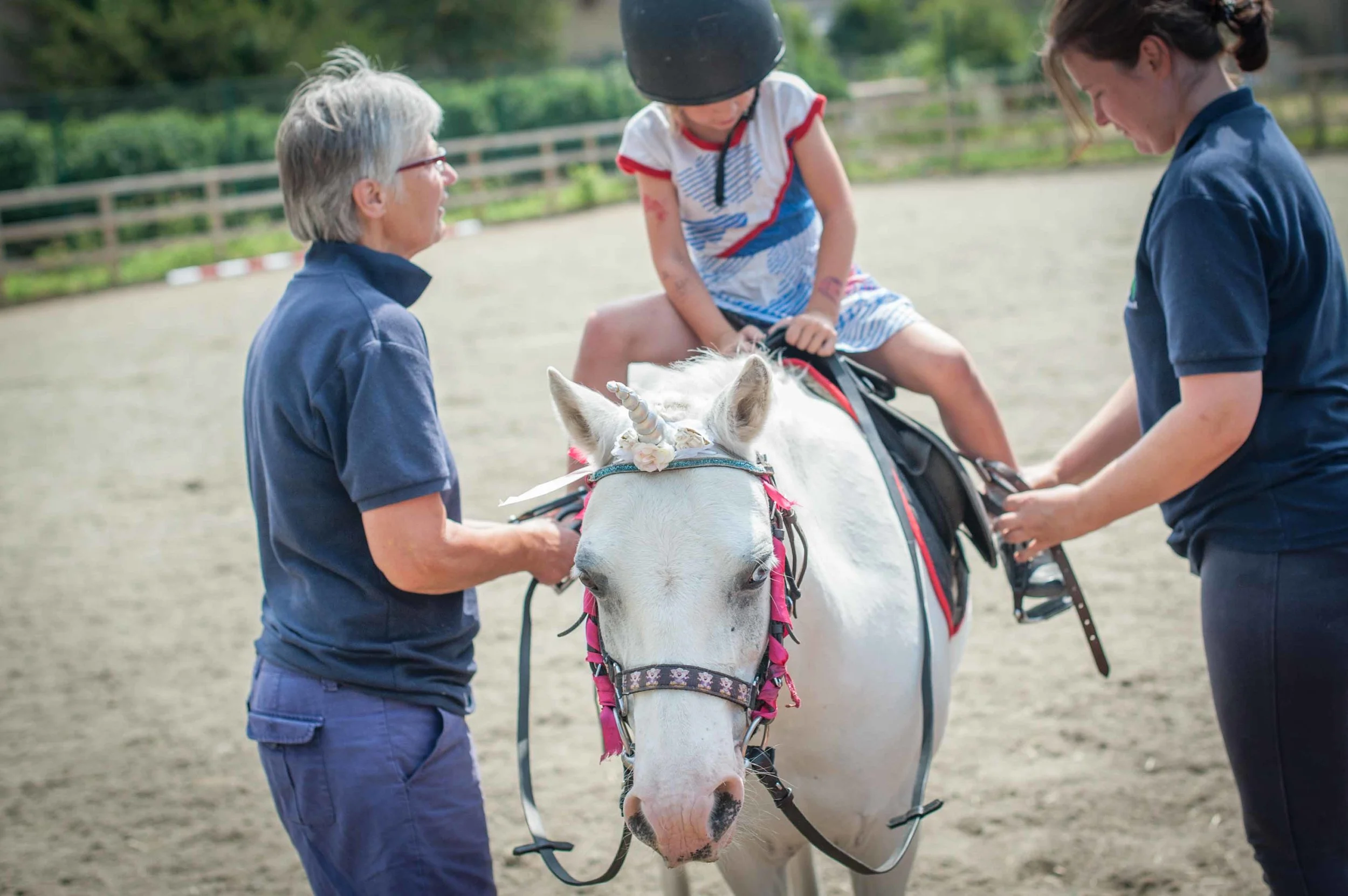 The very friendly staff helped settle her onto the pony and adjust the stirrups…